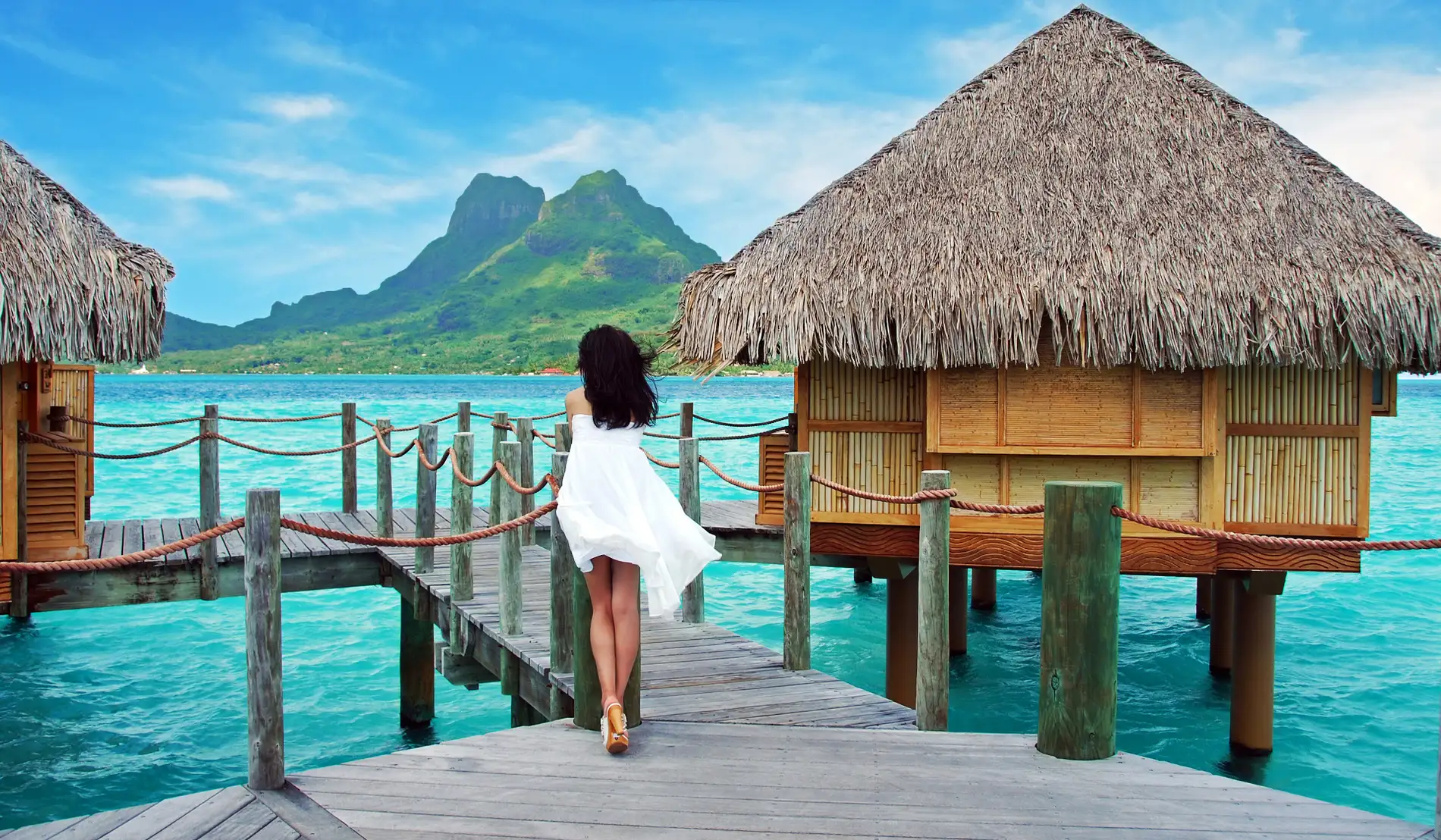 Bora Bora is a tropical paradise known for its turquoise lagoons, overwater bungalows, and vibrant